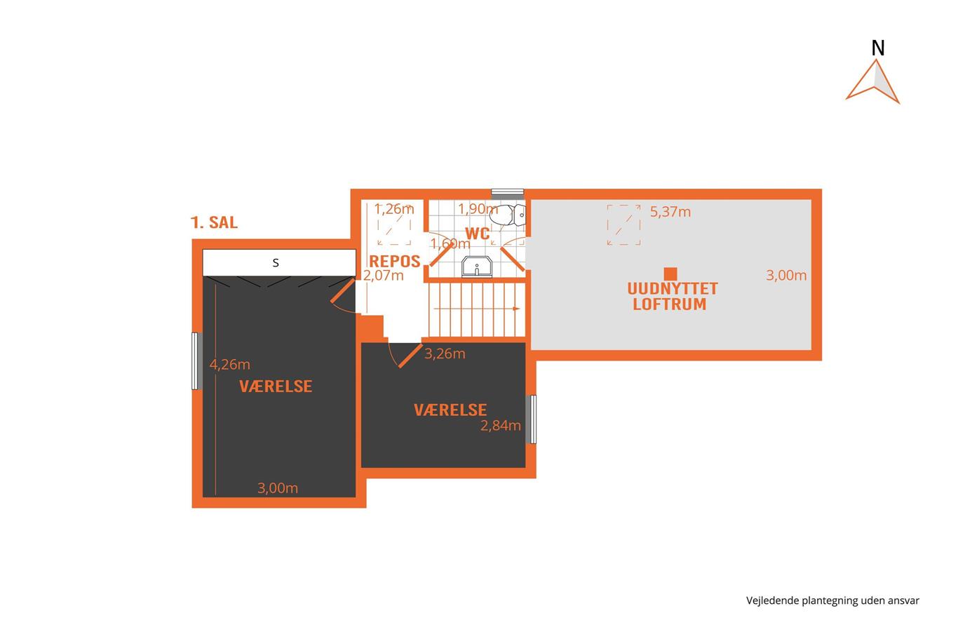 Vorflur, 2 separate Zimmer, weitere Ausbaureserve auf einer Grundfläche von ca. 15 m².