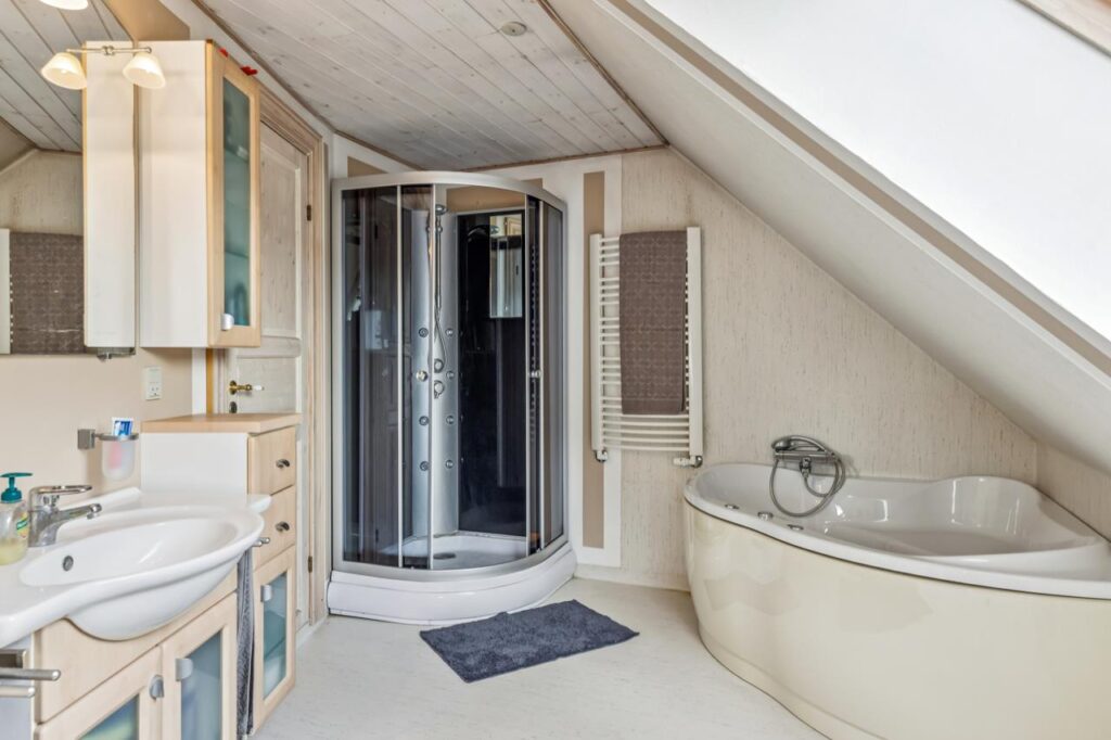 Haupthaus: Dieses 233 Quadratmeter große Gebäude wurde in den letzten 15 Jahren umfassend saniert. Im Erdgeschoss sind Fußbodenheizung, Akustikdecken, ein Kachelofen sowie ein Gasofen vorhanden. Die Räume umfassen eine Eingangshalle, ein Wohnzimmer, ein Esszimmer, ein Büro, eine große Küche mit Essbereich, einen Hauswirtschaftsraum und ein Badezimmer. Im Obergeschoss befinden sich ein großer Mehrzweckraum, drei Schlafzimmer sowie ein Schlafzimmer mit eigenem begehbarem Kleiderschrank und Badezimmer.